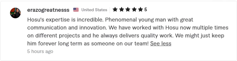 That's a tricky one😅 Feel free to book a call with me. Once I have a thorough insight into your project requirements, an estimated cost and timeline for the planned work will be given